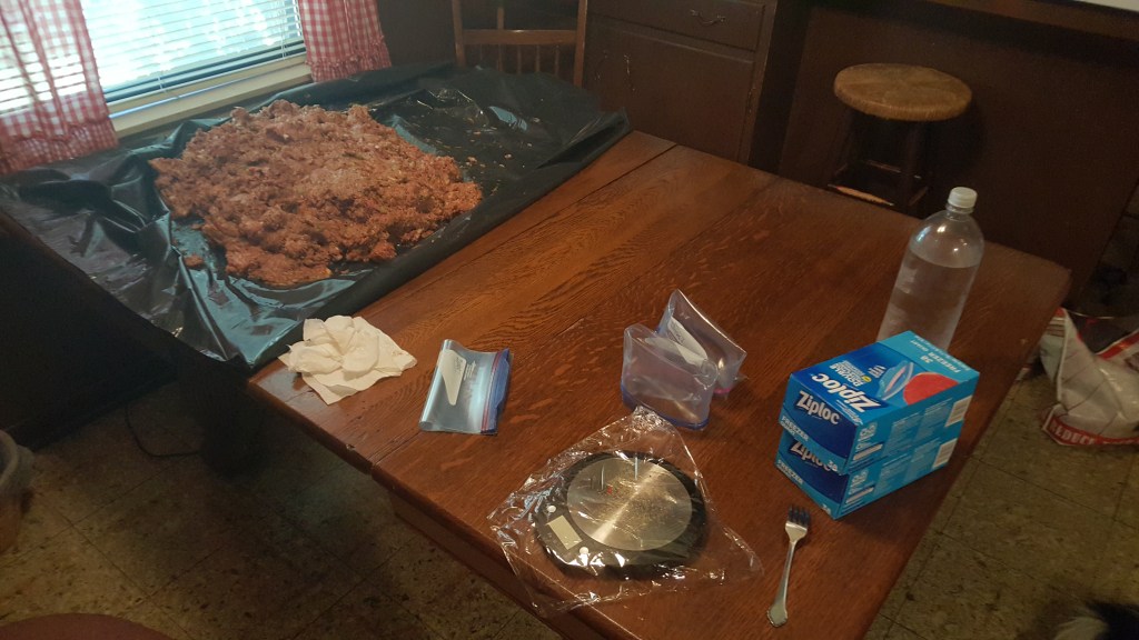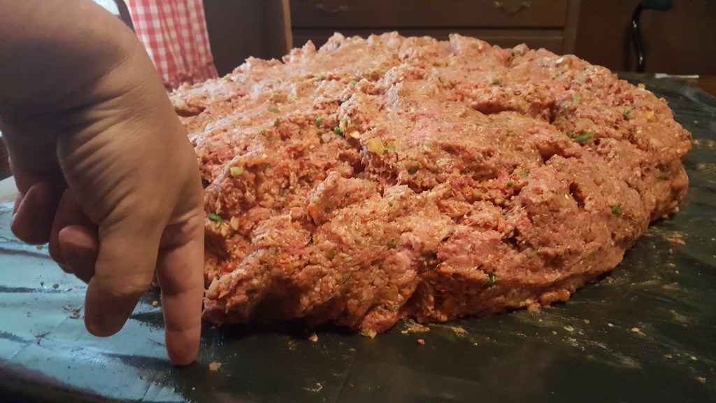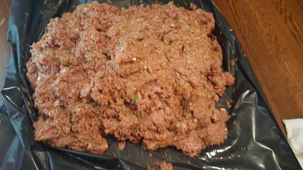 I have included a series of pictures that show the entire process at individual stages of preparation and final freezer storage. I will eventually purchase a large meat-mixer like butcher’s use to make seasoned sausage to simplify and make the process easier and faster instead of having to mix everything by hand like I have to do right now.